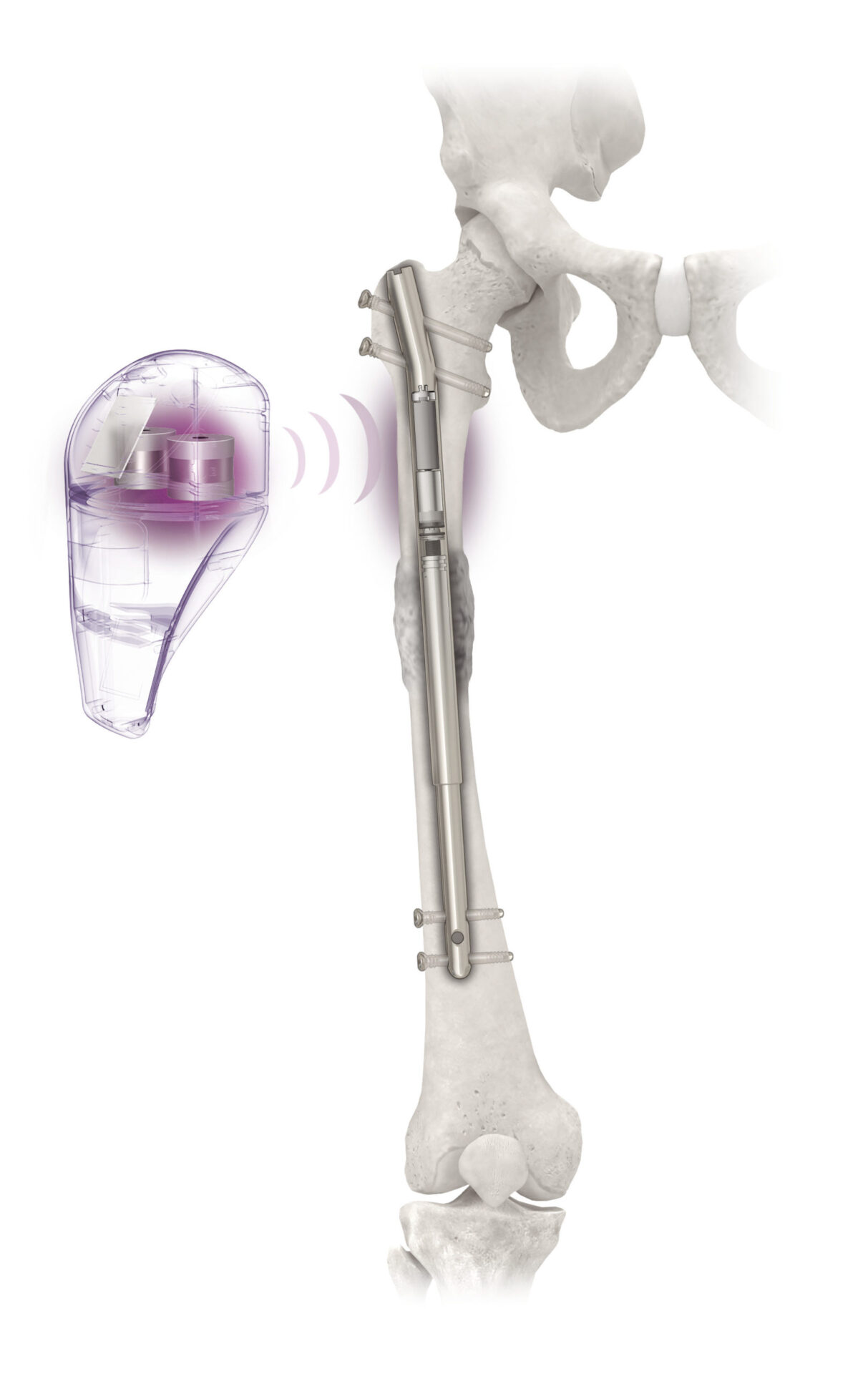 The process works with remarkable precision: once the bone is surgically prepared, the patient activates the nail using a simple external transmitter.
